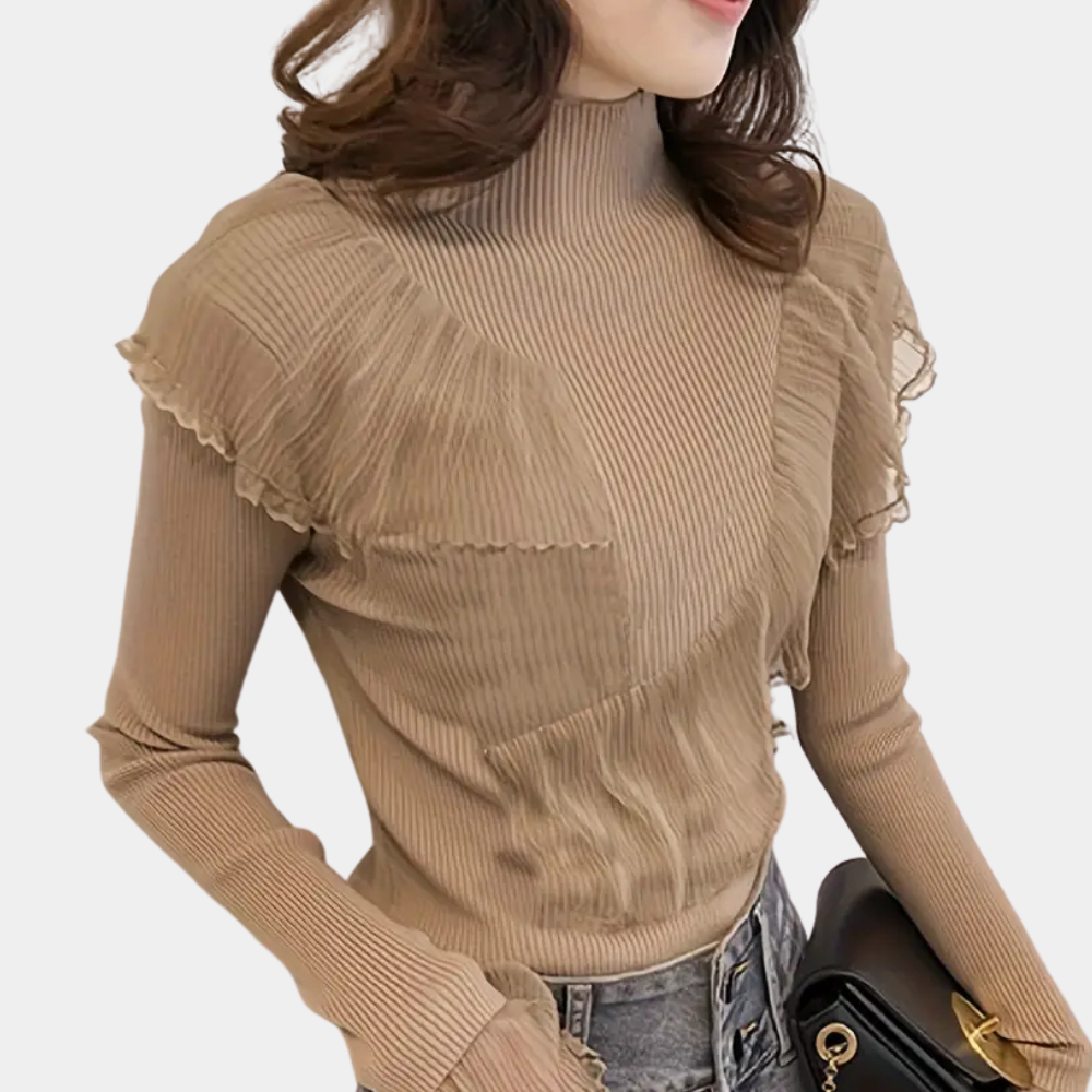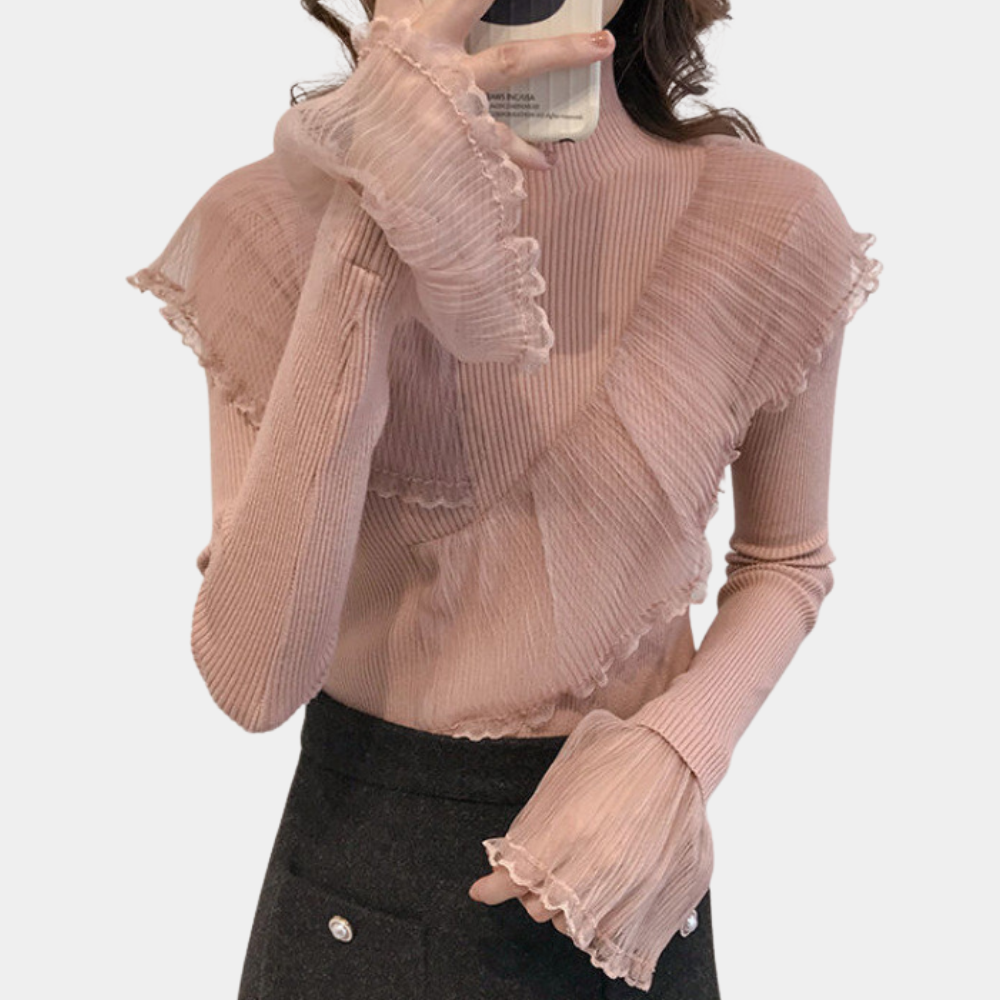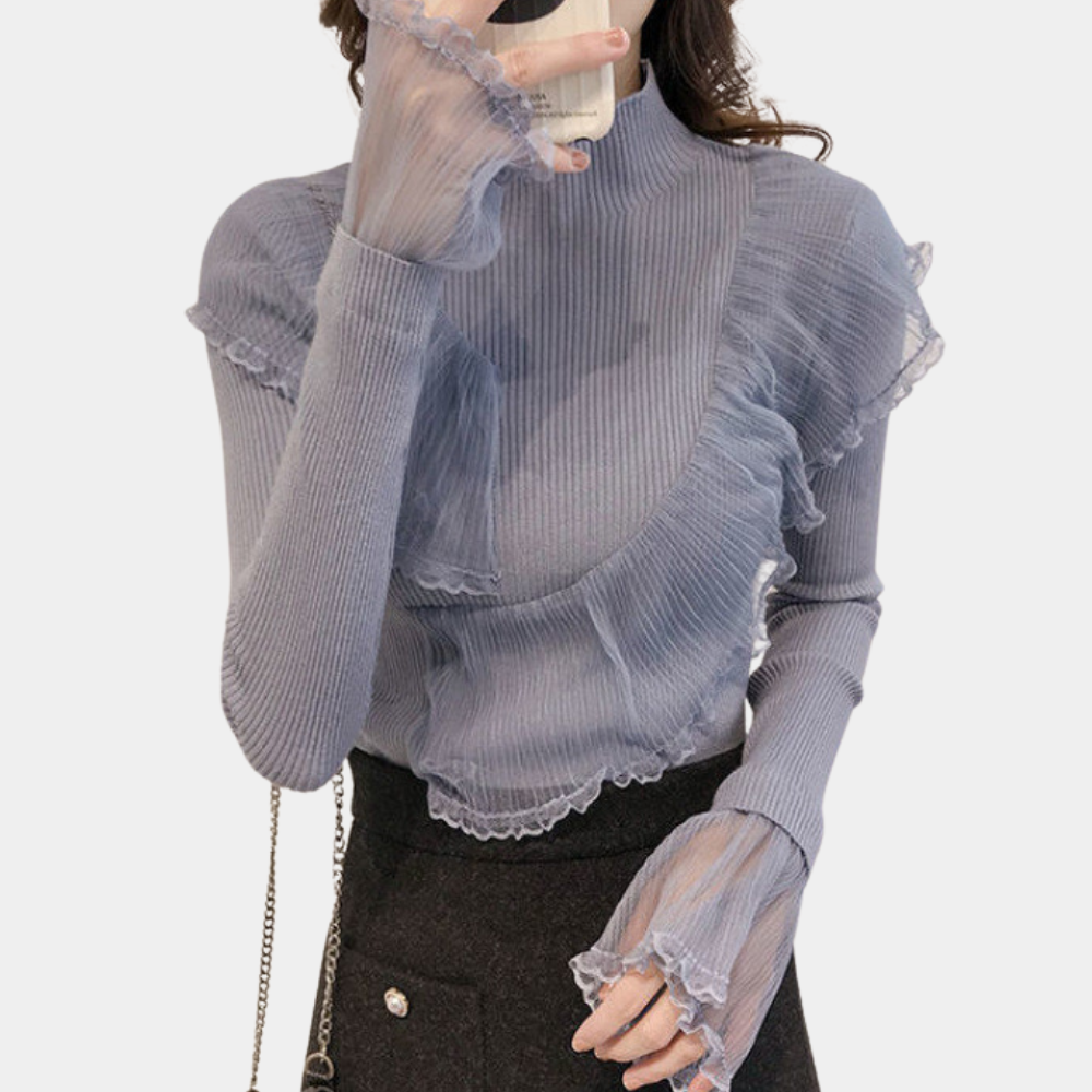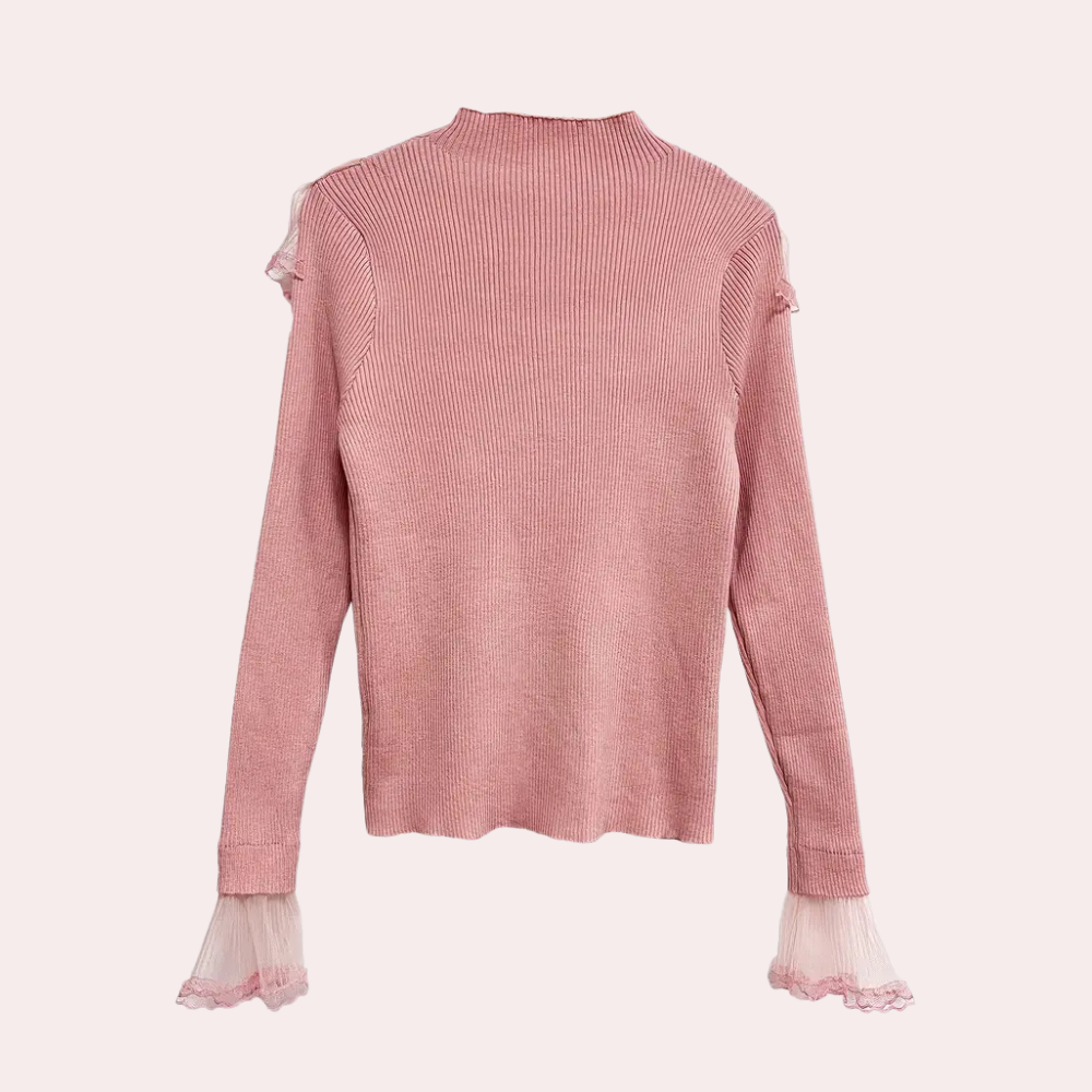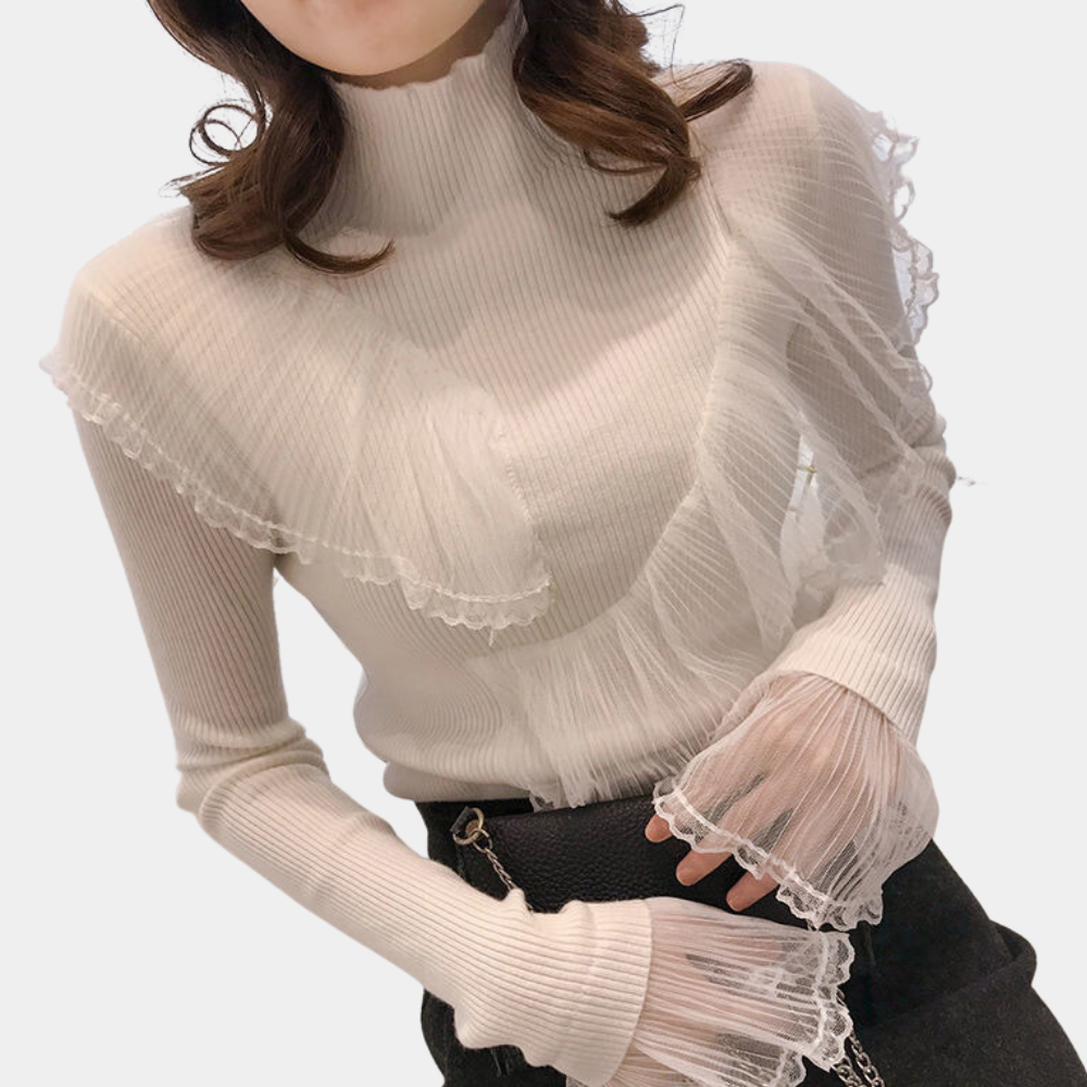 • Ontwerp: Elegante kant- en ruchesaccenten voegen een verfijnde toets toe aan de trui.