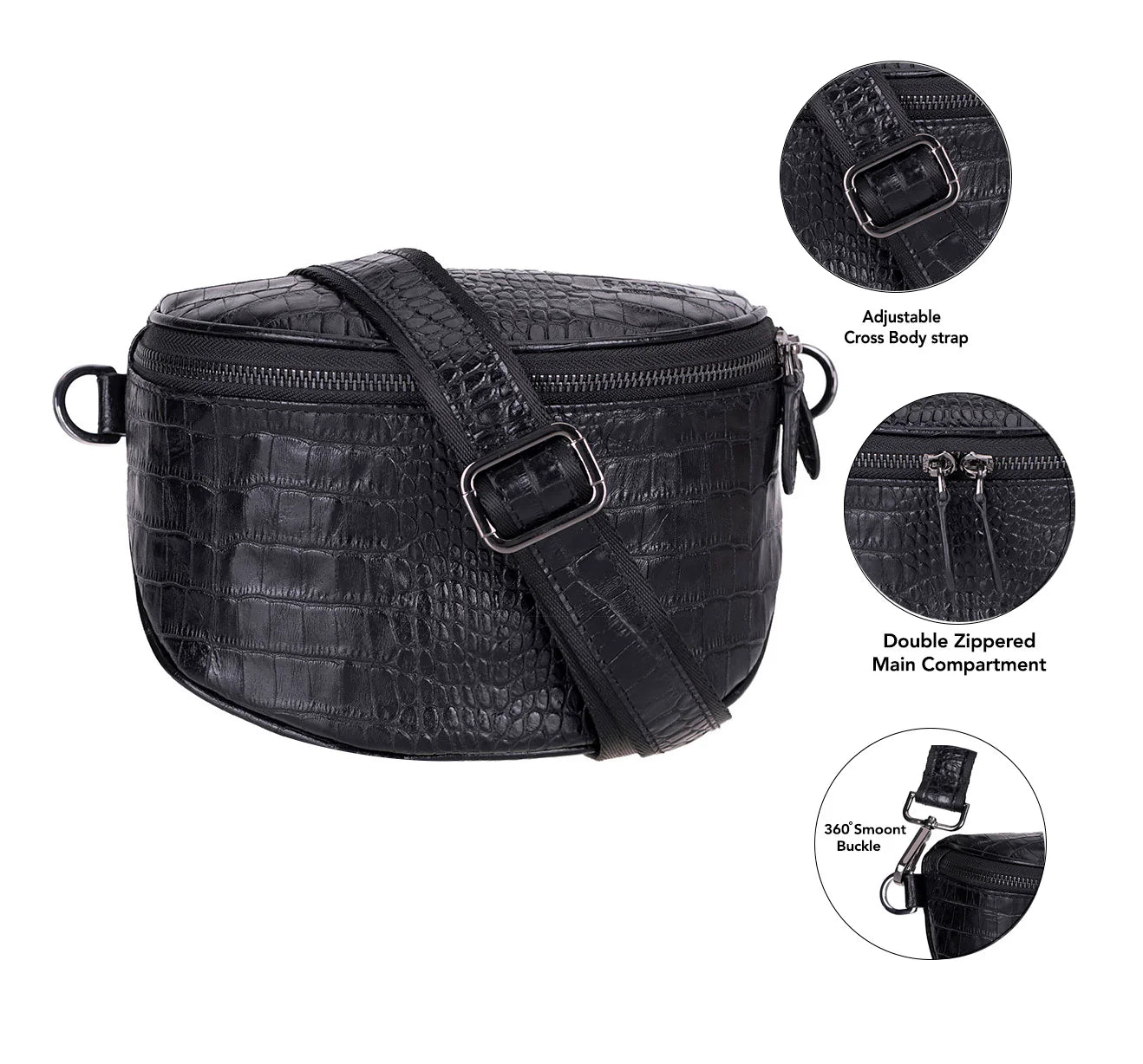 Maak jouw stijl gedurfd met deze riemtas van 100% echt leer. De hoogglans krokodillenstructuur maakt deze crossbodytas zowel luxevol als praktisch voor dagelijks gebruik. Het compacte formaat biedt multi-compartiment gemak voor het georganiseerd meenemen, waardoor hij perfect is voor dagelijks gebruik en reizen ook