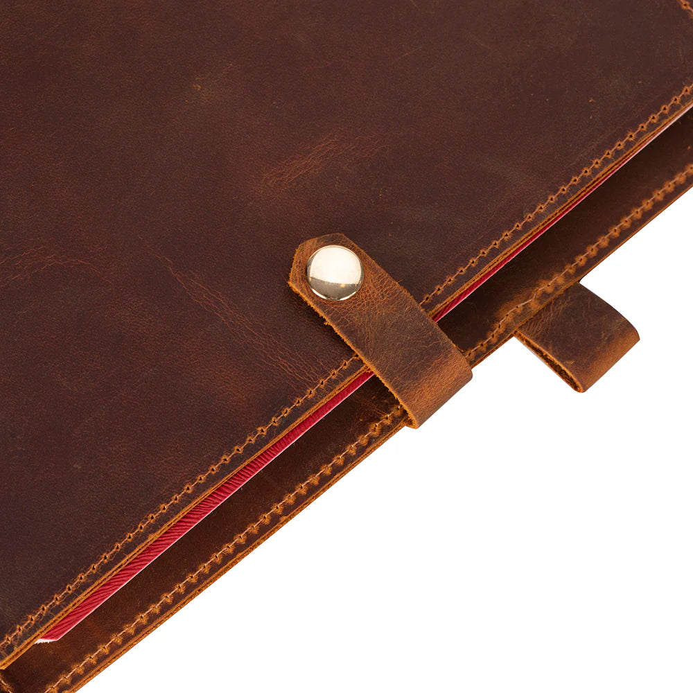 Gemaakt van 100% echt leer, biedt deze handgemaakte Slim A5 notitieboekhoes een stijlvolle en duurzame manier om je notitieboek te beschermen. Ontworpen voor professionals, studenten en creatievelingen, heeft het praktische opbergruimtes voor kaarten, notities en een pen, terwijl het een strak, minimalistisch uiterlijk behoudt.