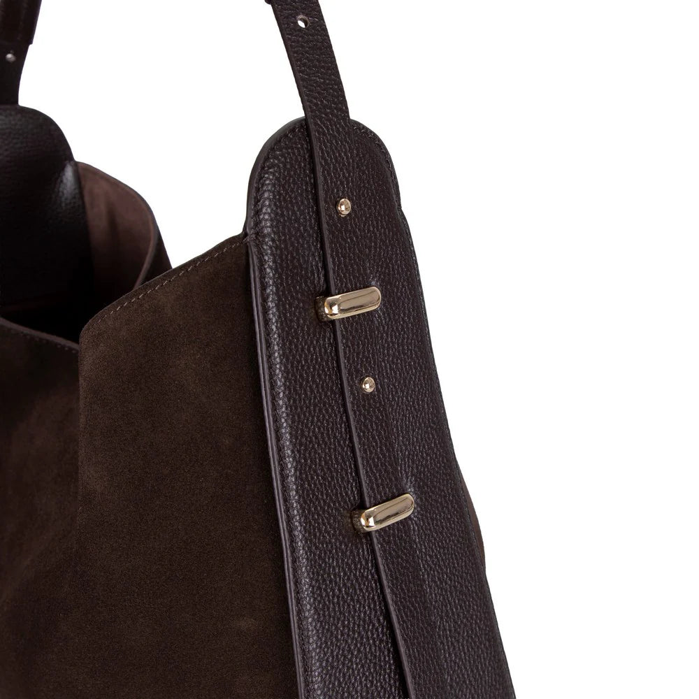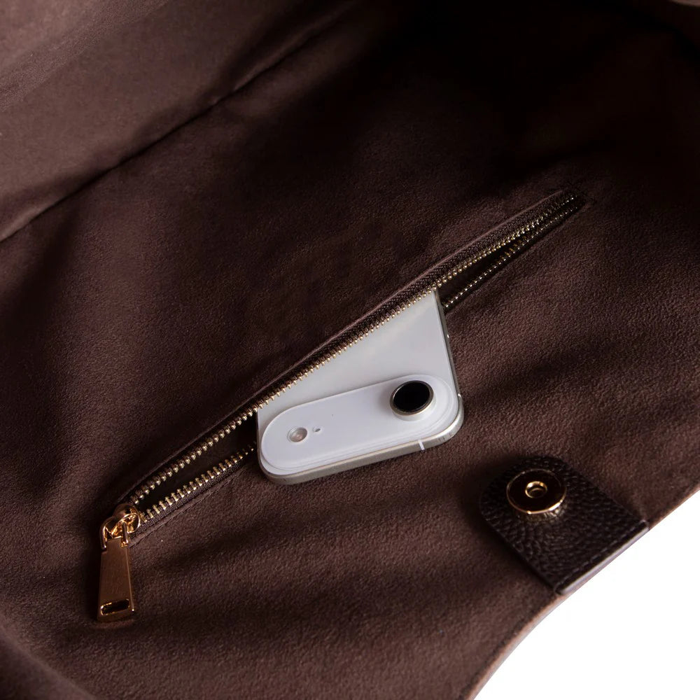 Gemaakt met de moderne vrouw in gedachten, straalt onze Tote Bag verfijnde elegantie uit. Vervaardigd uit een geraffineerde mix van echt suède leer, balanceert deze tas subtiel tussen textuur en structuur. Of het nu voor een casual brunch of een avondje uit is, deze schoudertas is de perfecte toevoeging aan elke outfit: strakke lijnen, elegante textuur en veelzijdigheid.